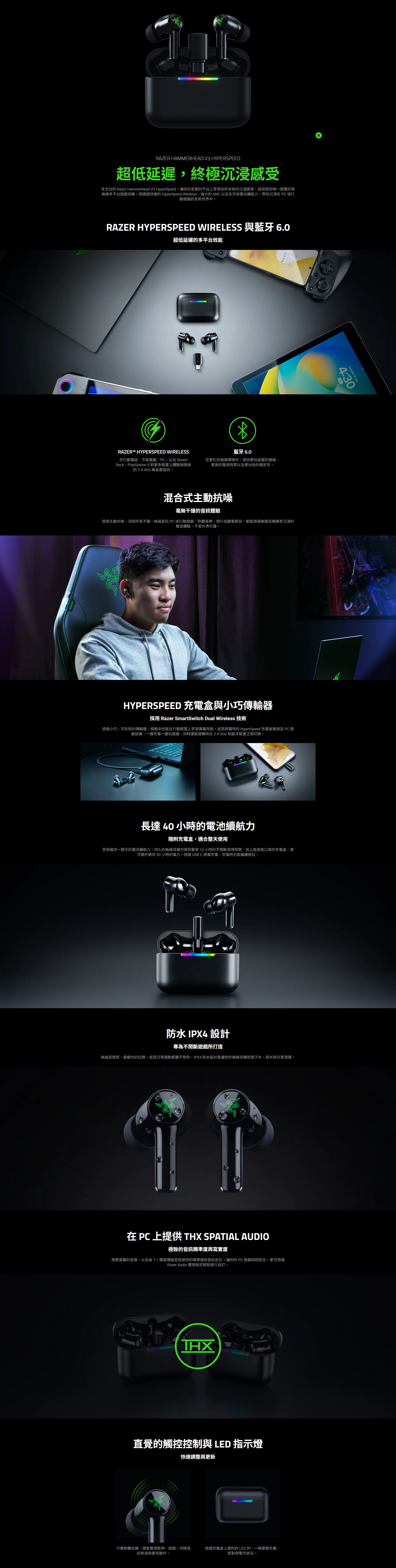 全方位的 Razer Hammerhead V3 HyperSpeed,讓你在喜愛的平台上享受前所未有的沉浸感受,這就是你唯一需要的真無線多平台遊戲耳機。透過超快速的 HyperSpeed Wireless、強大的 ANC 以及全天候電池續航力,帶你沉浸在 PC 或行動遊戲的全新世界中。