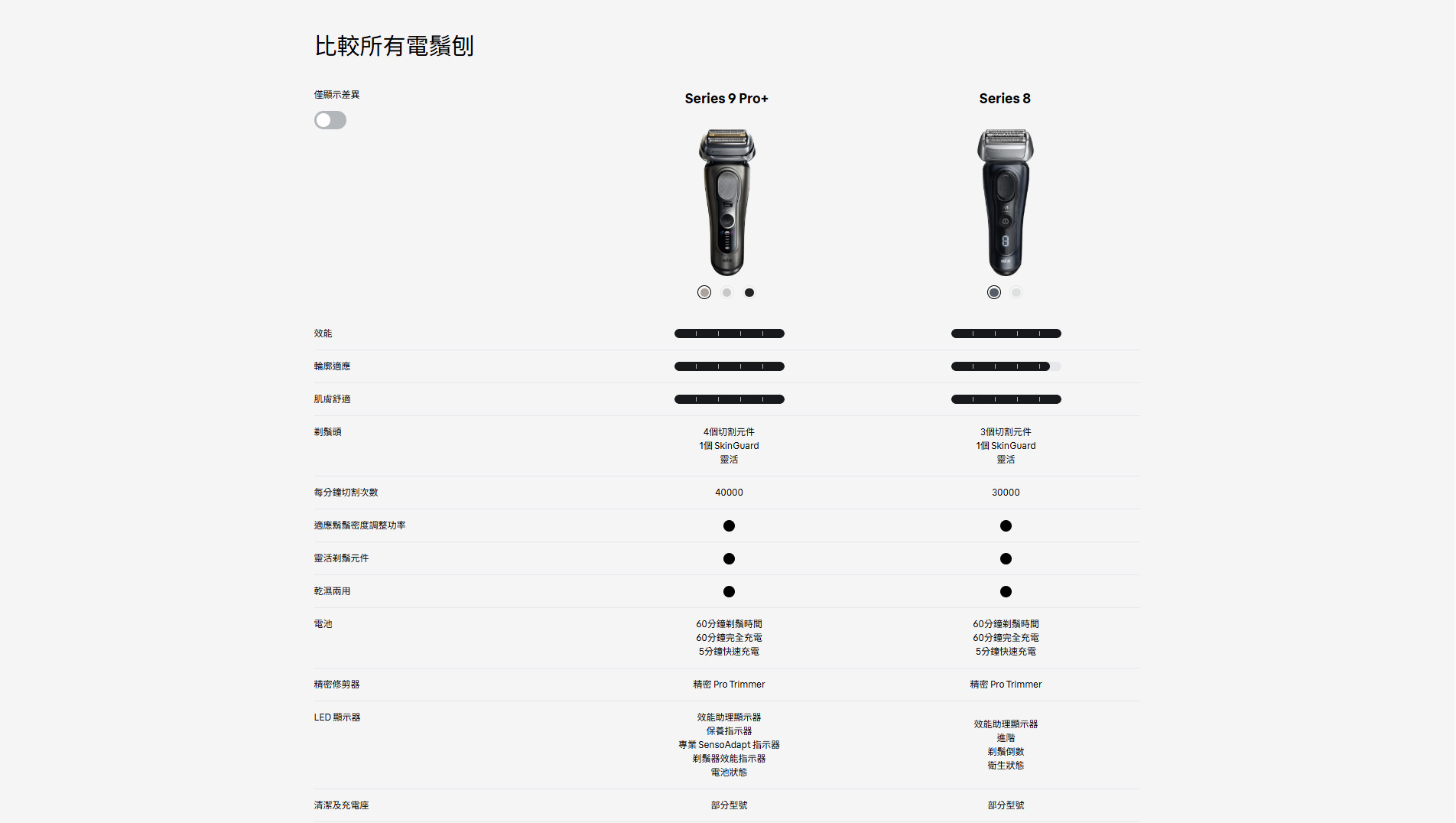 • 高效性能:每分鐘 40,000 次修剪動作,提供快速順暢的剃鬚體驗。