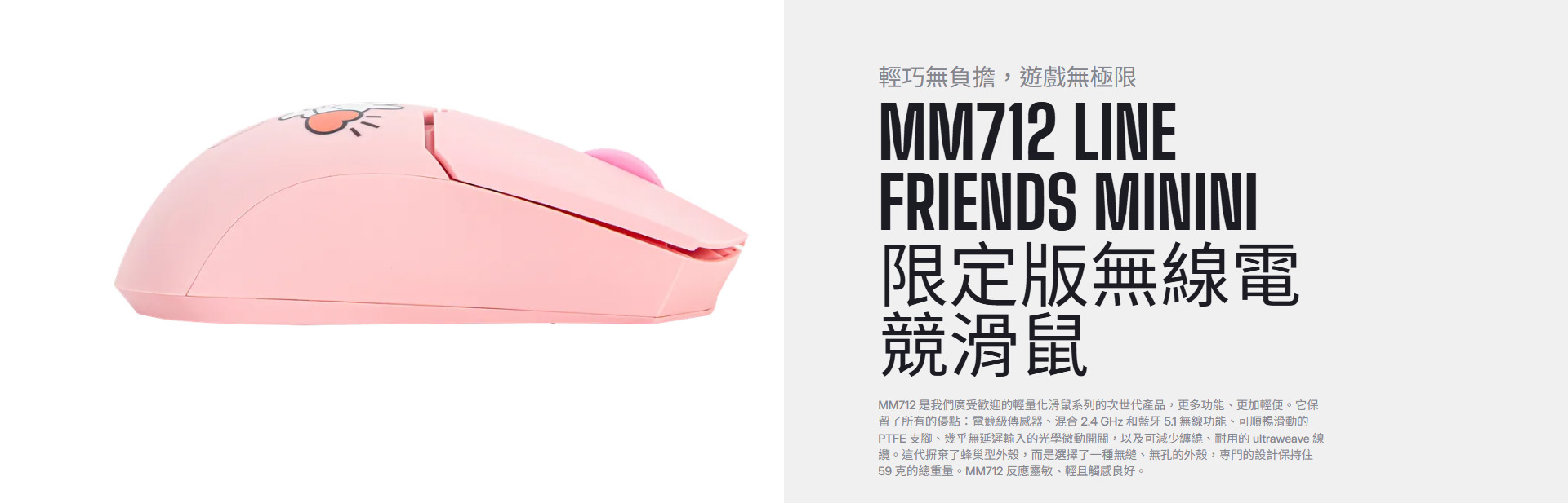 .MM712 是我們廣受歡迎的輕量化滑鼠系列的次世代產品,提供更多功能並減輕重量。