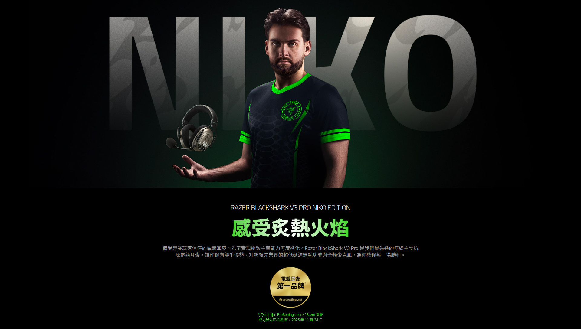 Razer 攜手 CS 傳奇步槍手 NiKo 推出頂規聯名系列周邊 結合專屬火焰元素,靈感來自 NiKo 的「沙鷹之王」稱號,致敬他奪下生涯第 10 座 CS MVP 的傳奇時刻。