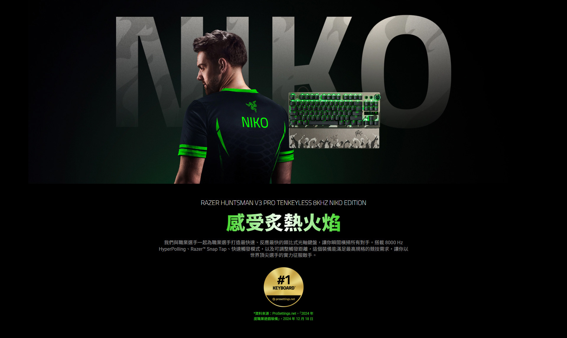 Razer 攜手 CS 傳奇步槍手 NiKo 推出頂規聯名系列周邊 結合專屬火焰元素,靈感來自 NiKo 的「沙鷹之王」稱號,致敬他奪下生涯第 10 座 CS MVP 的傳奇時刻。