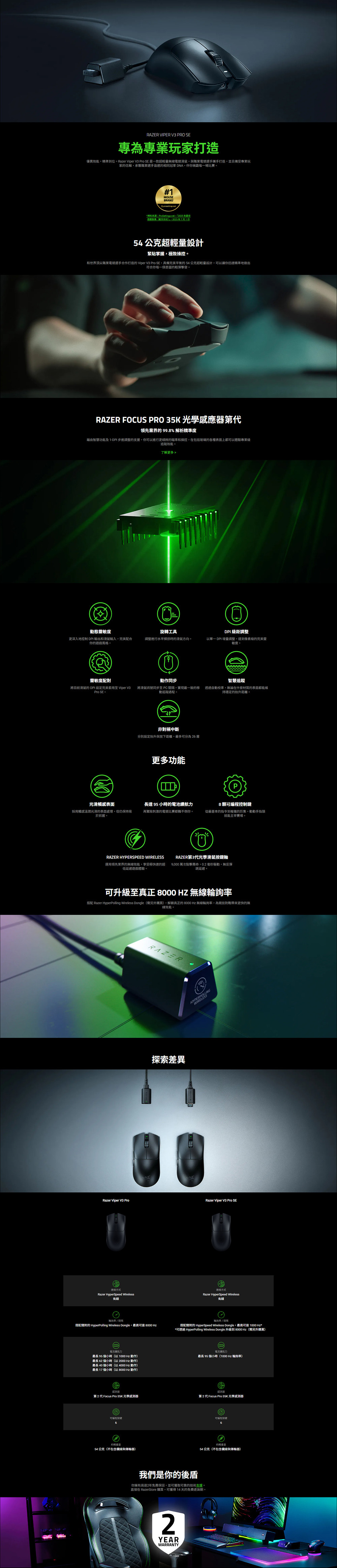 .54g 超輕量設計:與世界級電競選手合作開發,完美平衡,快速精準操作。