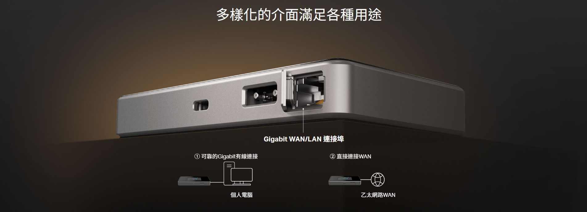 .Gigabit WAN/LAN 連接埠 - 提供穩定且用途廣泛的有線連接