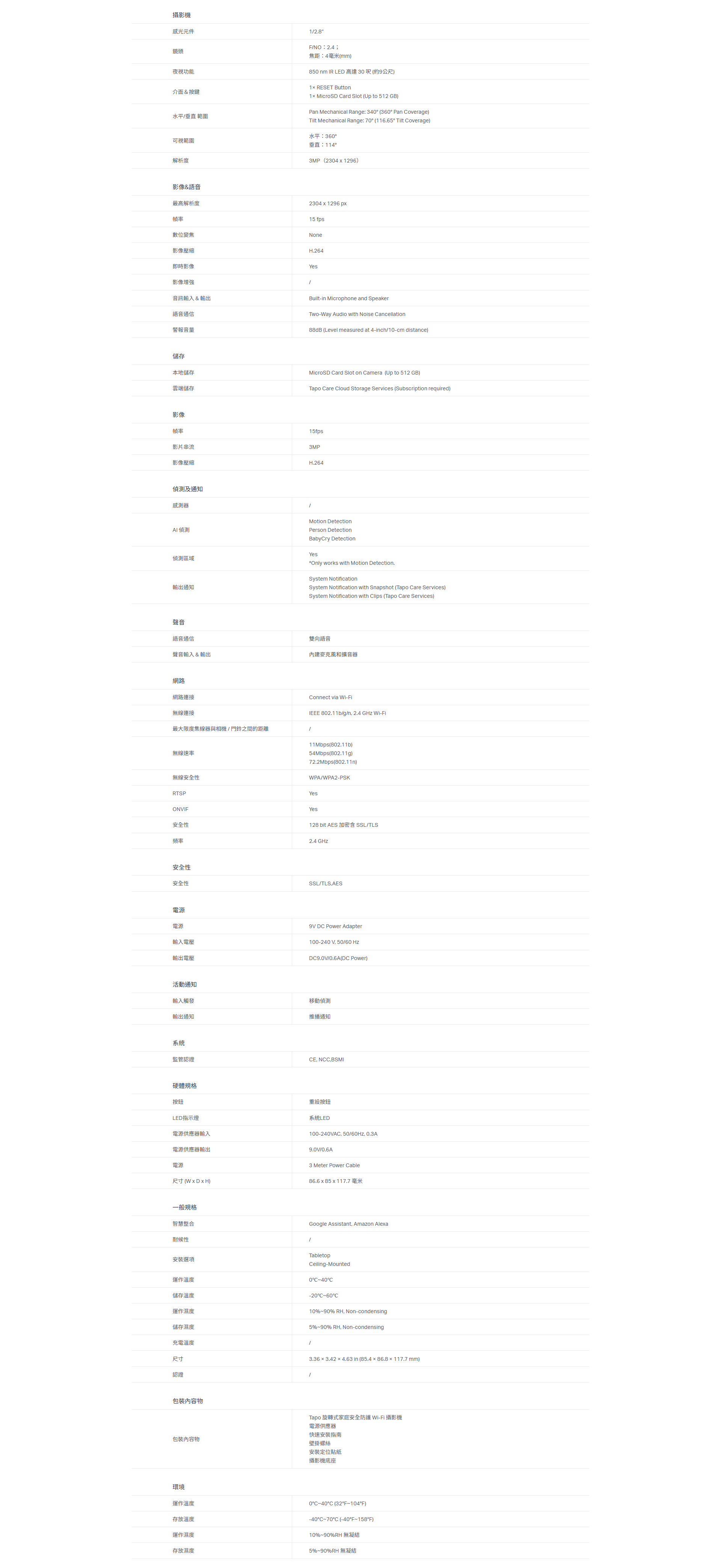 • 平移/傾斜:360° 水平範圍。